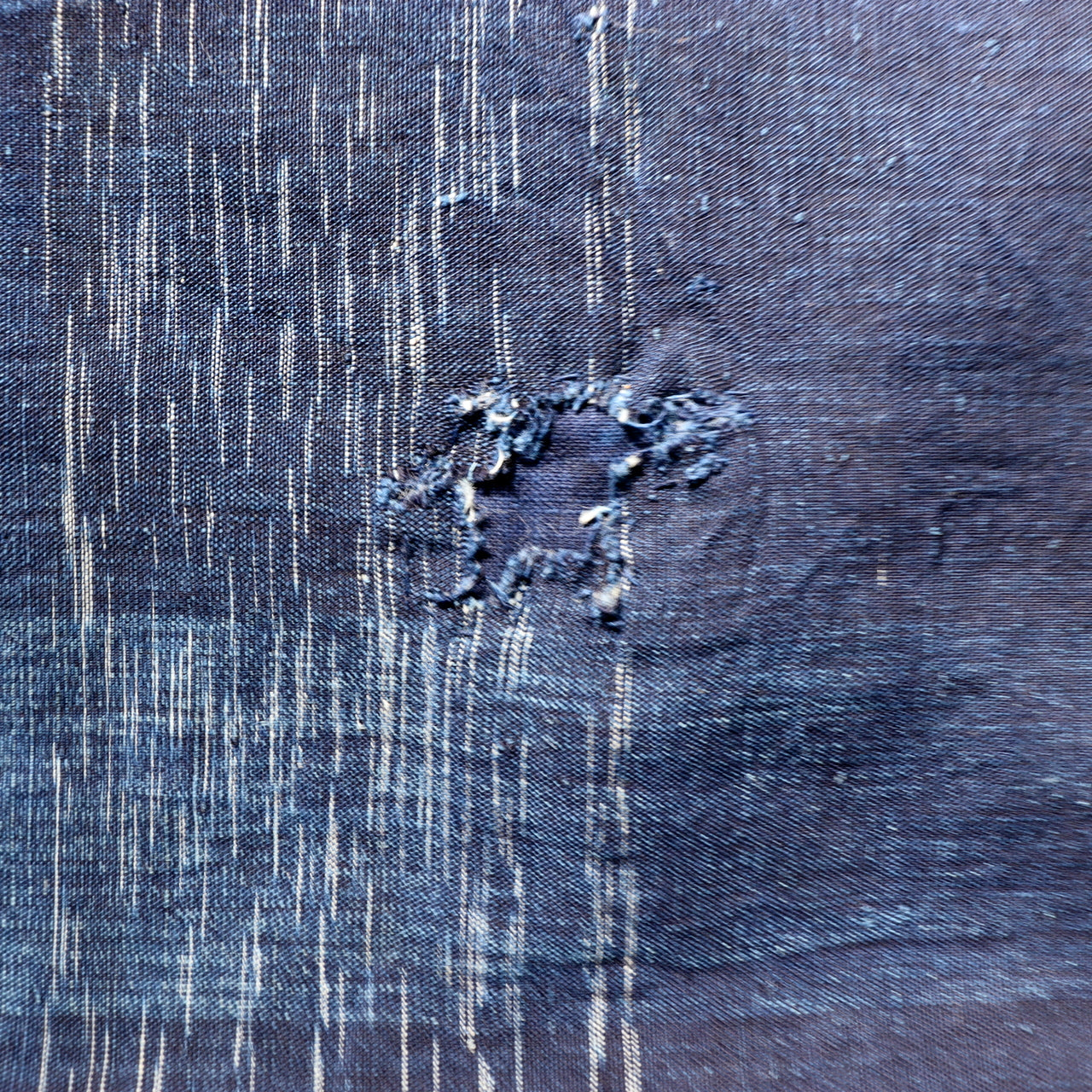 Technique: Shows evidence of hand-stitching and repairs (Sashiko) accumulated over time.