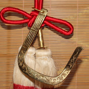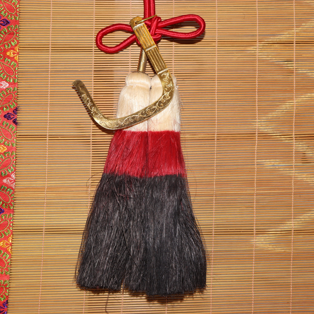 The Omisu is more than a functional furnishing; it is a symbol of status, dignity, and spirituality. Finely handwoven from slender bamboo strips, its edges are framed with Yamato-Nishiki, one of Japan’s most luxurious traditional brocades. Decorative copper fittings engraved with floral motifs and elegant tassels further enhance its prestige.